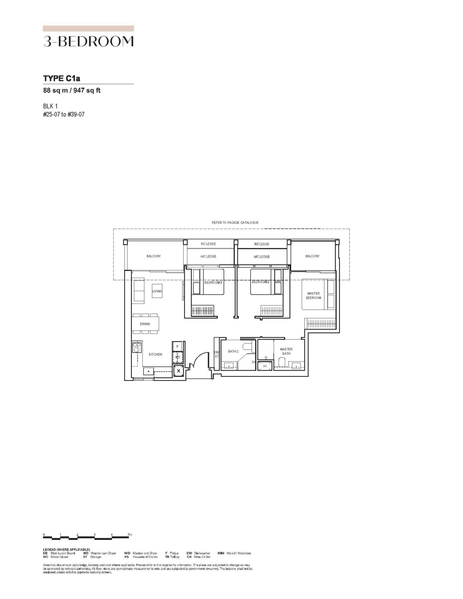 The 3-bedder units in CanningHill Piers can be categorised into two distinctive groups, namely 3-bedroom and 3-bedroom premium unit types with 60 and 20 units respectively. The 3-bedroom unit has 3 different layouts with sizes ranging from 893 sqft to 1,259 sqft, while the 3-bedroom premium at 1,313 sqft. The 3-bedroom premium unit enjoys the privacy of having a private lift.