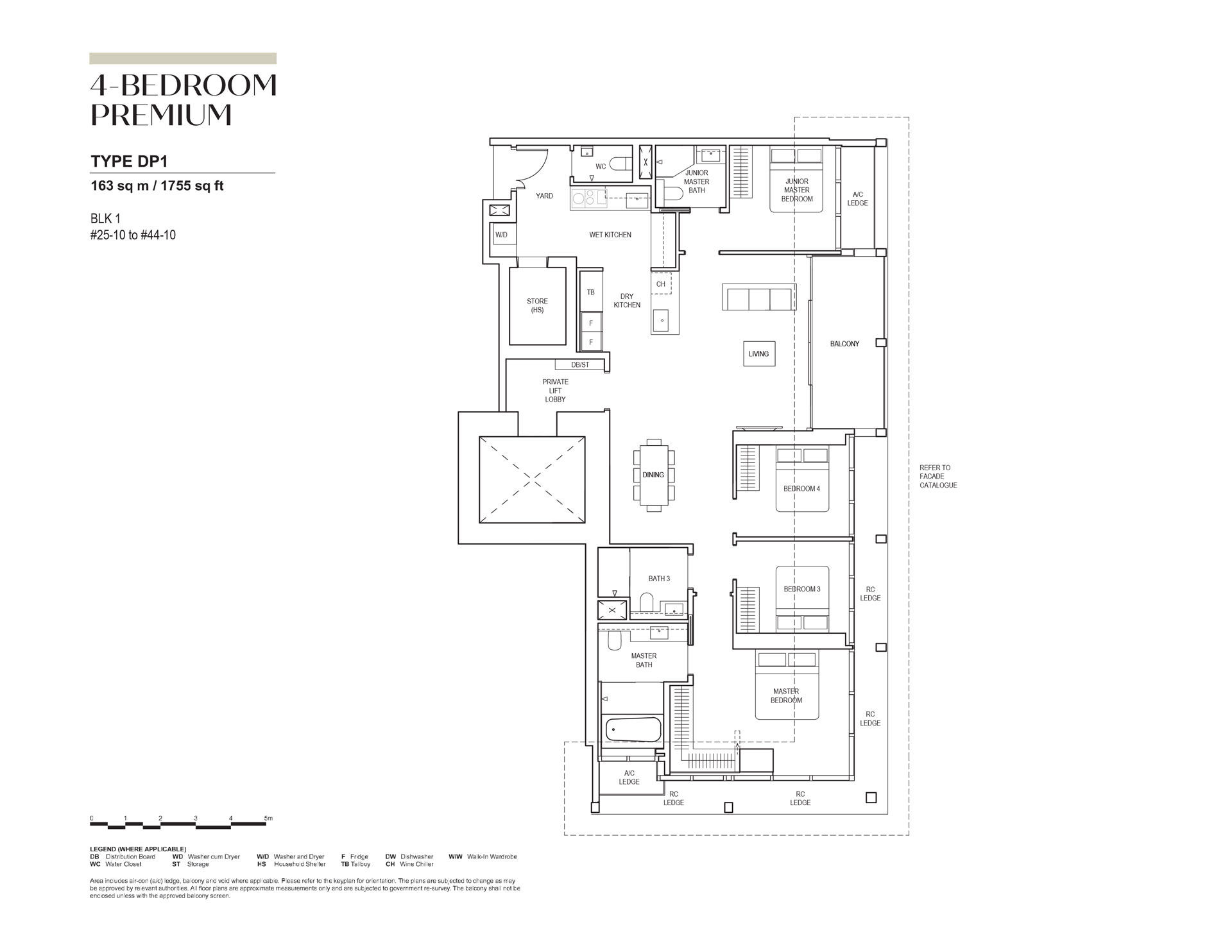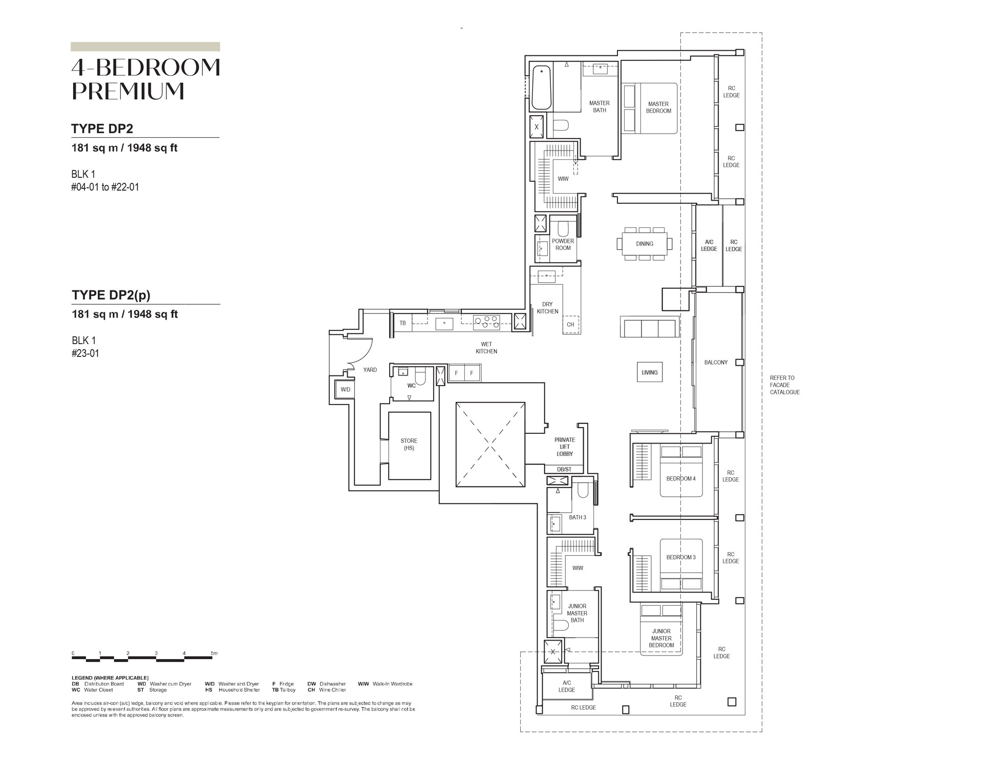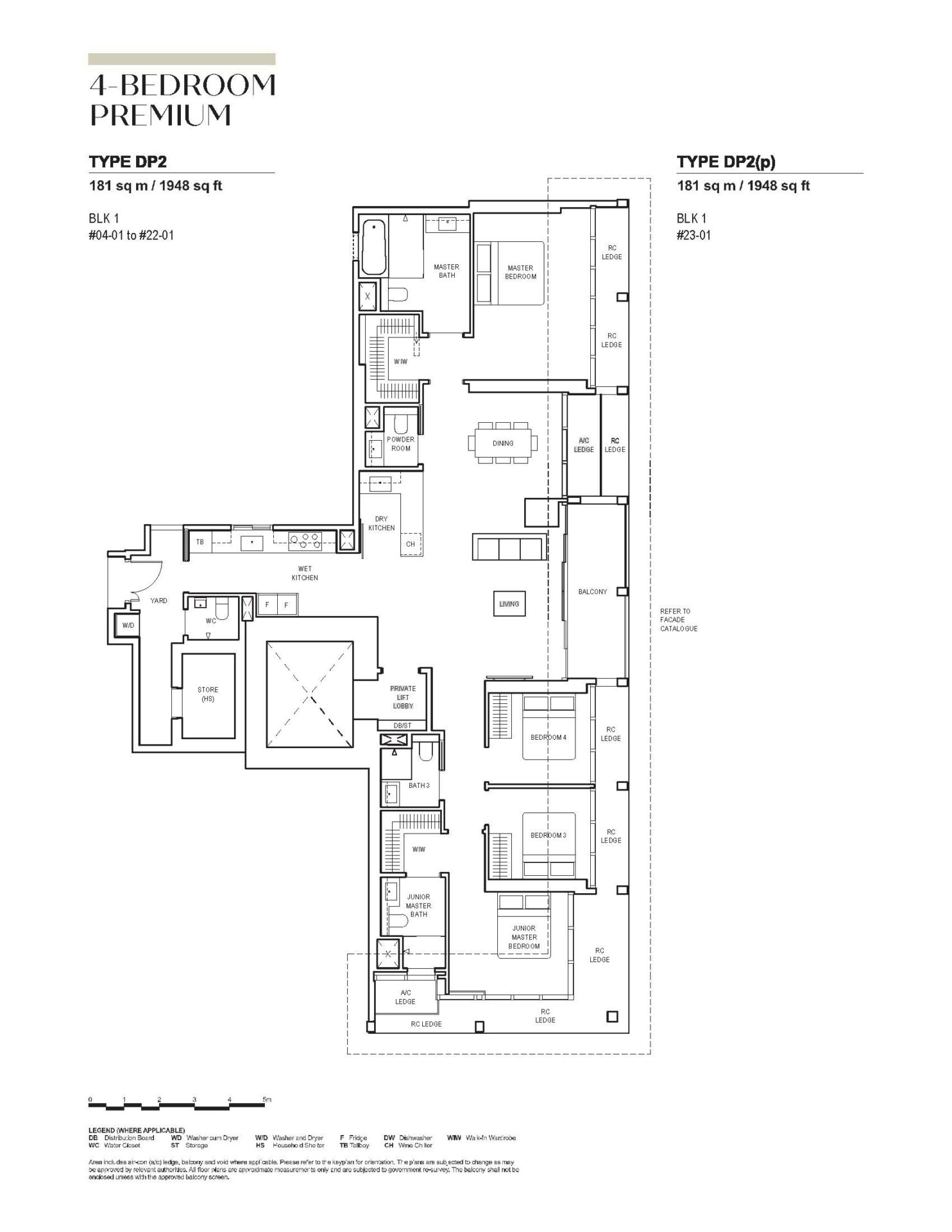 There are 3 layouts of 4-bedroom premium unit types with a total of 60 units in CanningHill Piers and their size ranges from 1,755 sqft to 1,959 sqft. The 4-bedder units are located in Tower 1 that enjoys an excellent view of either the Singapore River or the Marina Bay area. These 4-bedroom premium units enjoy the privacy of having a private lift.